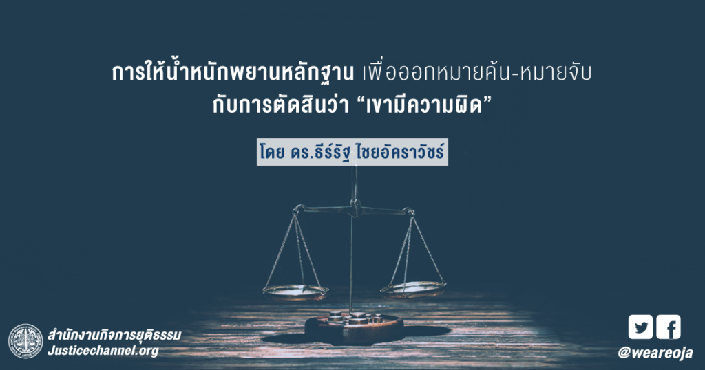 บทความกฎหมายน่าอ่าน “การให้น้ำหนักพยานหลักฐาน เพื่อออกหมายค้น.. หมายจับ.. กับการตัดสินว่า เขามีความผิด..”