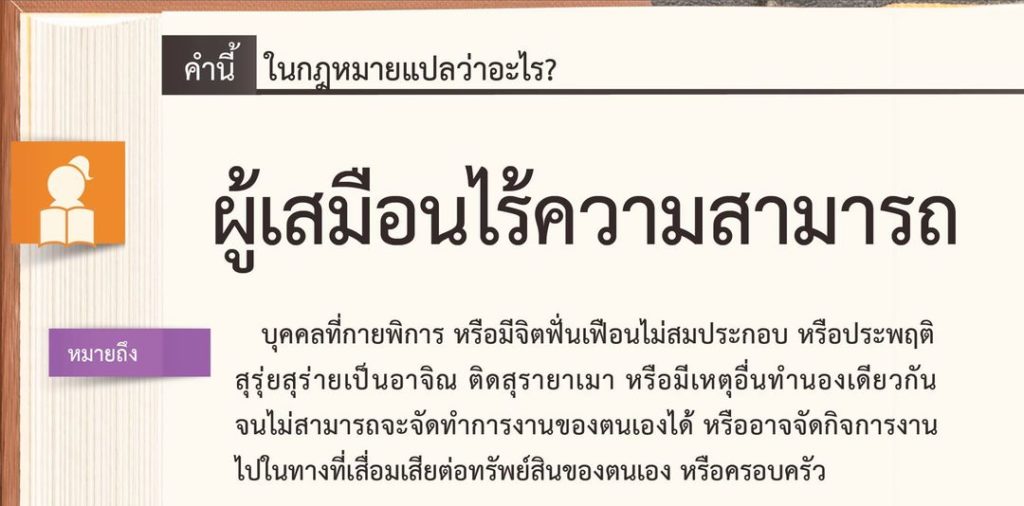 คำนี้ในกฎหมายแปลว่าอะไร? : ผู้เสมือนไร้ความสามารถ