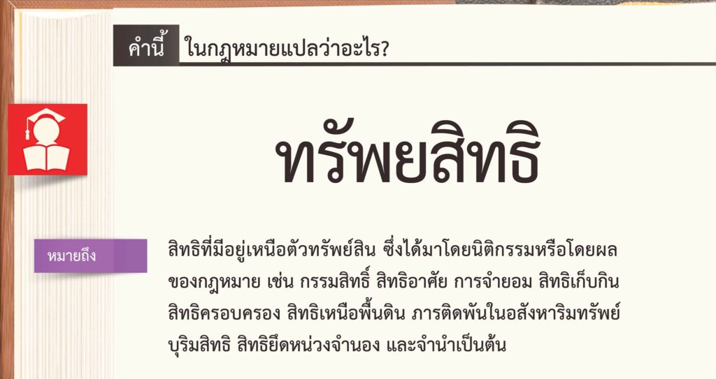 คำนี้ ในกฎหมาย : ทรัพยสิทธิ (Real rights)