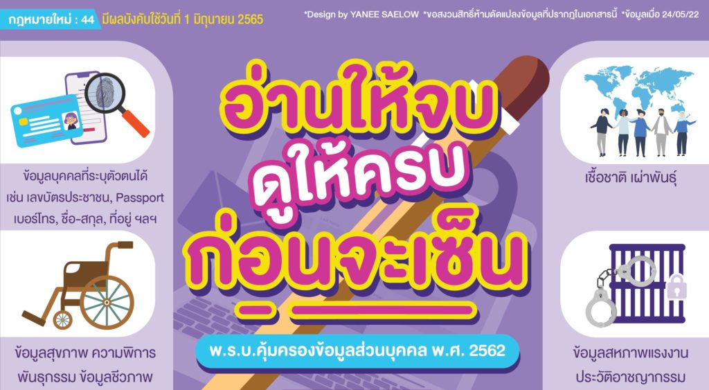 กฎหมายใหม่ กฎหมายใหม่ พ.ร.บ.คุ้มครองข้อมูลส่วนบุคคล พ.ศ. 2562 “อ่านให้จบ ดูให้ครบ ก่อนจะยินยอมให้ข้อมูลส่วนบุคคล” บังคับใช้ 1 มิถุนายน 2565