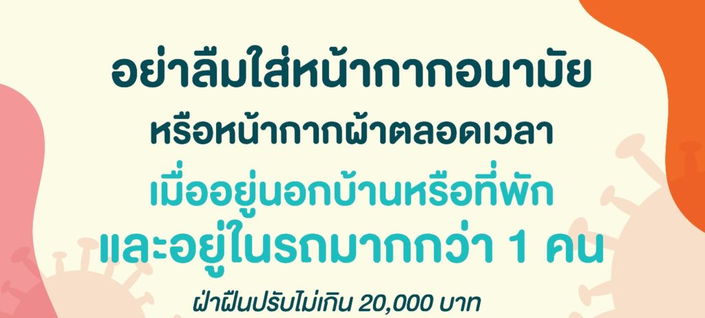 อยู่นอกบ้าน อยู่ในรถ อย่าลืม…ใส่หน้ากากอนามัย หรือ หน้ากากผ้าตลอดเวลา