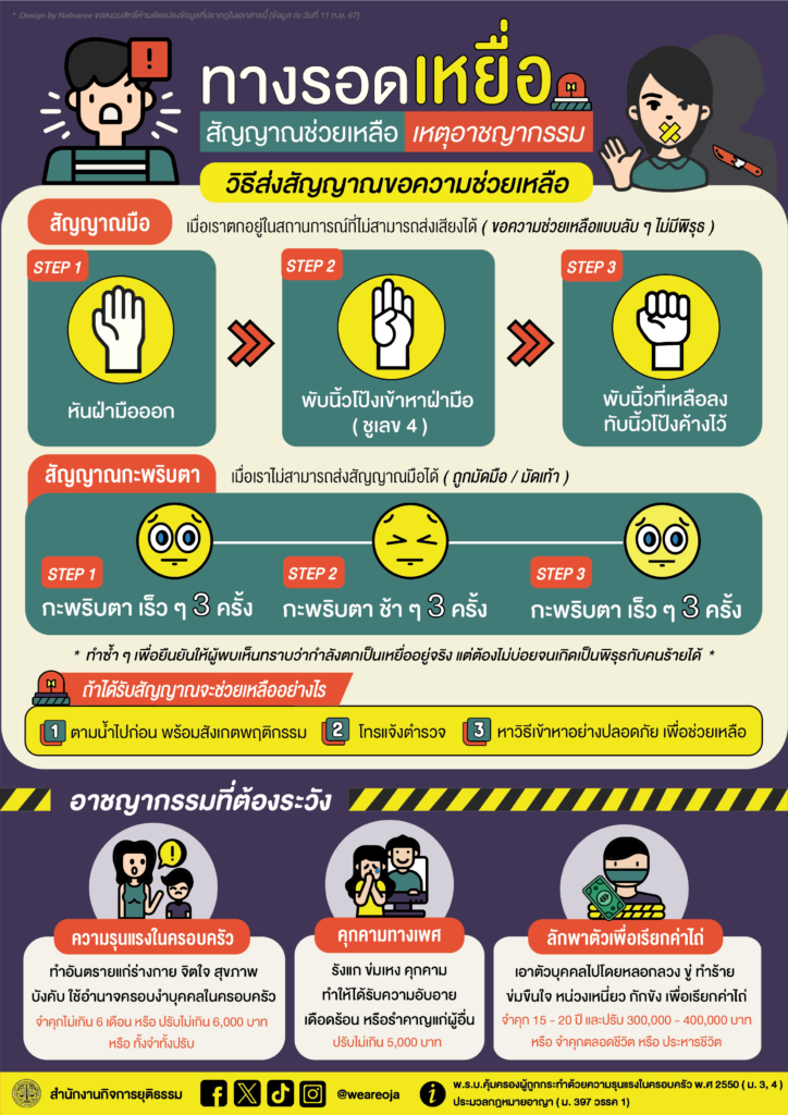 การรู้จักวิธีขอความช่วยเหลืออย่างมีประสิทธิภาพในสถานการณ์ฉุกเฉินนับเป็นทักษะสำคัญที่อาจช่วยชีวิตได้ ทางรอดเหยื่อ สัญญาณช่วยขอความเหลือที่ใช้ในกรณีเกิดเหตุอาชญากรรมและวิธีการสื่อสารเมื่อตกอยู่ในอันตราย สัญญาณขอความช่วยเหลือ