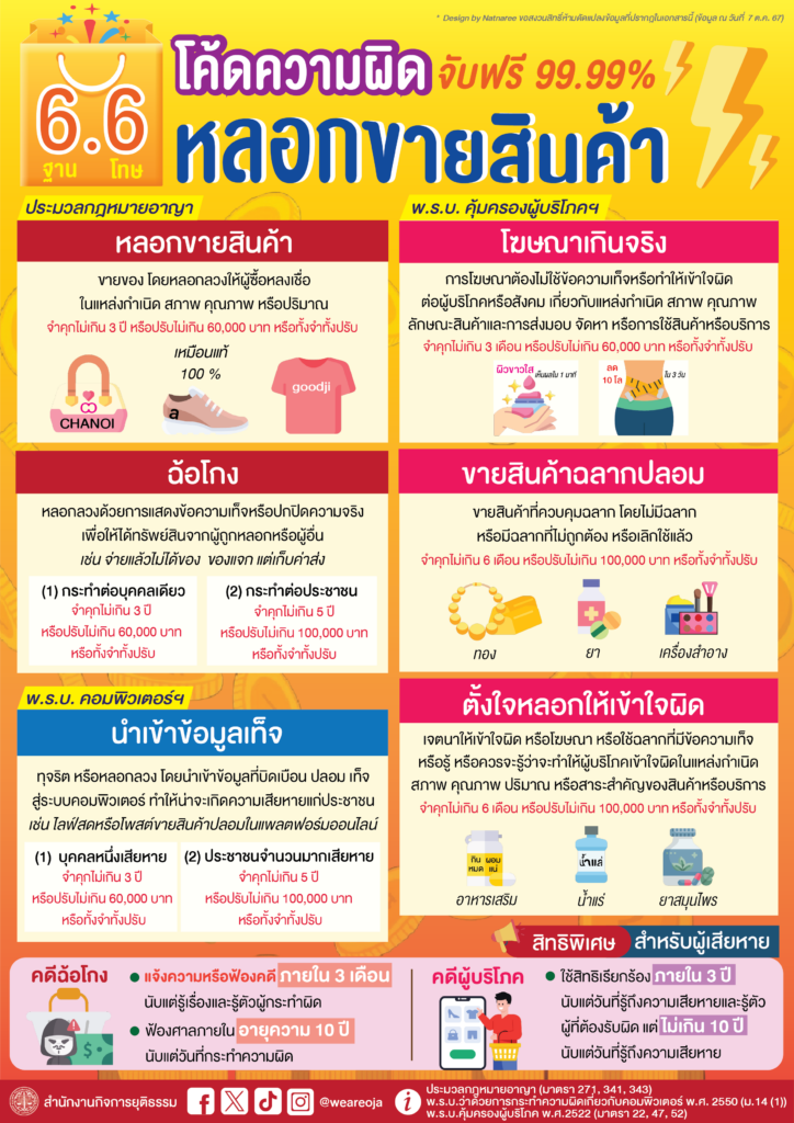 - ขายของปลอมหรือของที่ไม่ตรงตามที่โฆษณา