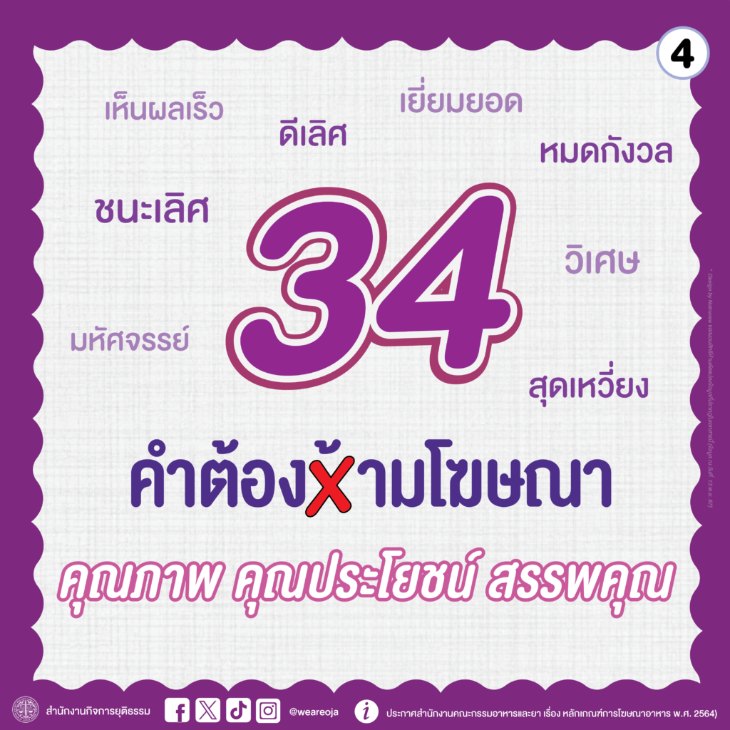 34 คำต้องห้ามโฆษณา คุณภาพ คุณประโยชน์ สรรพคุณ