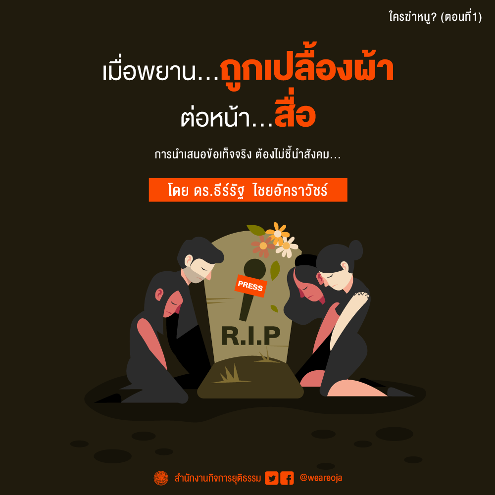 • คราวต่อไป ตอน 2 ของเรื่อง #ใครฆ่าหนู.. ? จะนำเสนอว่า มี “กฎหมายอะไรที่เกี่ยวข้องกับการทำหน้าที่ของสื่อ” ในเรื่องนี้บ้าง…