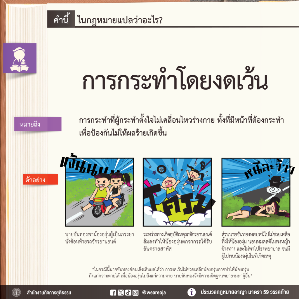 บทลงโทษ: การกระทำโดยงดเว้นจะมีความผิดและรับโทษเช่นเดียวกับการกระทำโดยตรง หากครบองค์ประกอบความผิดตามที่กฎหมายบัญญัติ