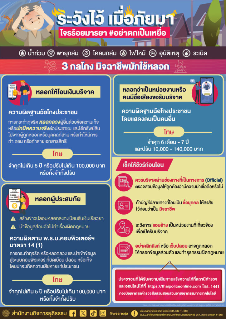 การหลอกลวงในช่วงภัยพิบัติมีความผิดหนักตามกฎหมายไทย: