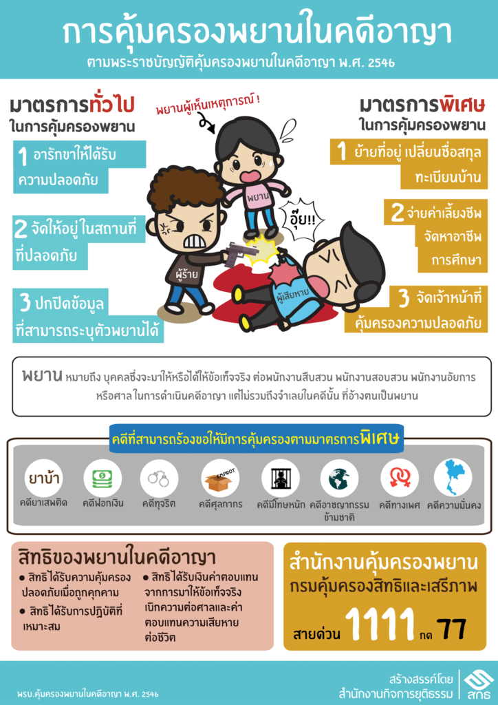 อย่ากังวลหรือกลัว….ถ้าคุณต้องเป็นพยาน หรือ ให้การในชั้นศาล เพราะคุณจะได้รับการ คุ้มครอง ตาม พ.ร.บ. คุ้มครองพยานในคดีอาญา พ.ศ. 2546