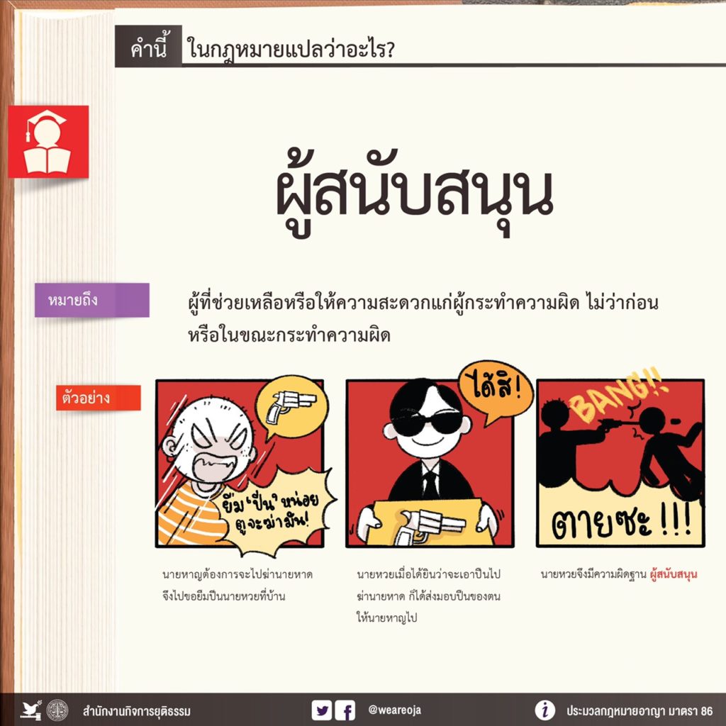 #กฎหมาย #ศัพท์กฎหมายวันละคำ #ผู้สนับสนุน #คดีอาญา #ชื่นใจคนไทยรู้กฎหมาย #รู้กฎหมายไว้ใช้กฎหมายเป็น #สำนักงานกิจการยุติธรรม