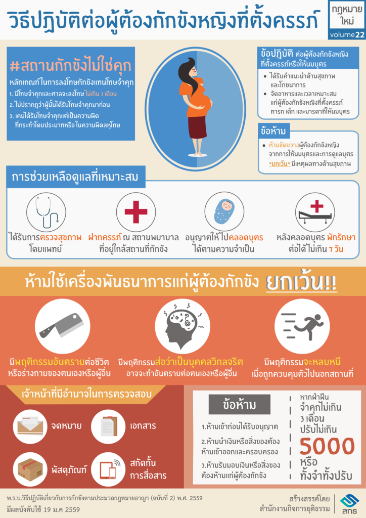 เมื่อผู้ต้องกักขังเป็นผู้หญิงที่ตั้งครรภ์ รัฐจะปฎิบัติอย่างไรในสถานกักขัง #วิธีปฎิบัติต่อผู้ต้องกักขังหญิงที่ตั้งครรภ์#สำนักงานกิจการยุติธรรม#infographic