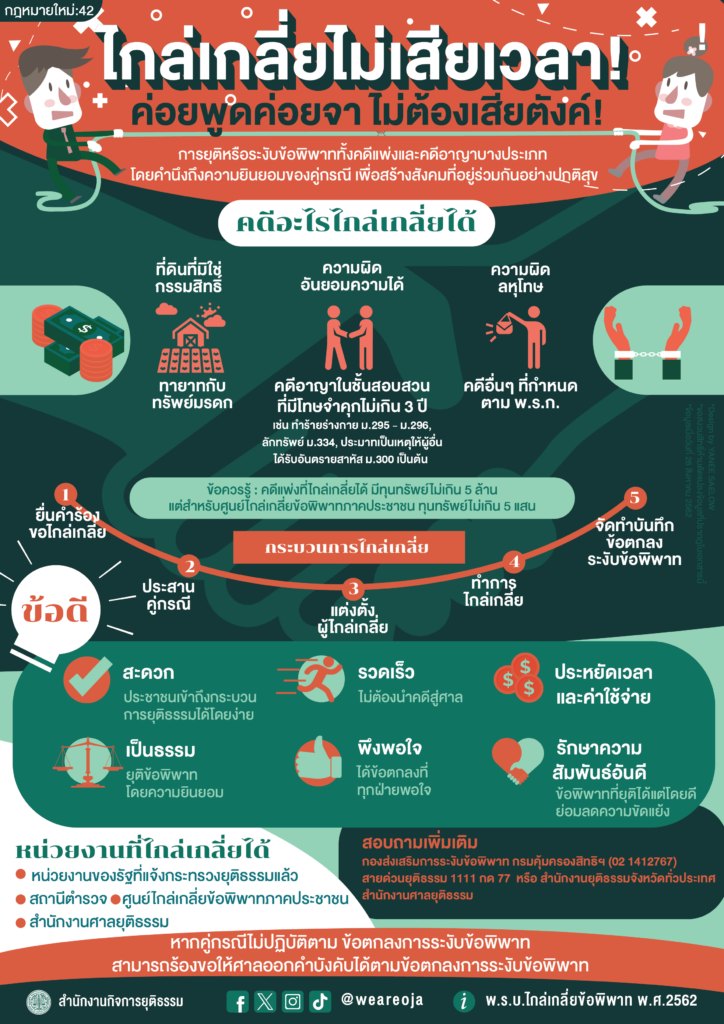 ที่มา : พระราชบัญญัติ การไกล่เกลี่ยข้อพิพาท พ.ศ. 2562