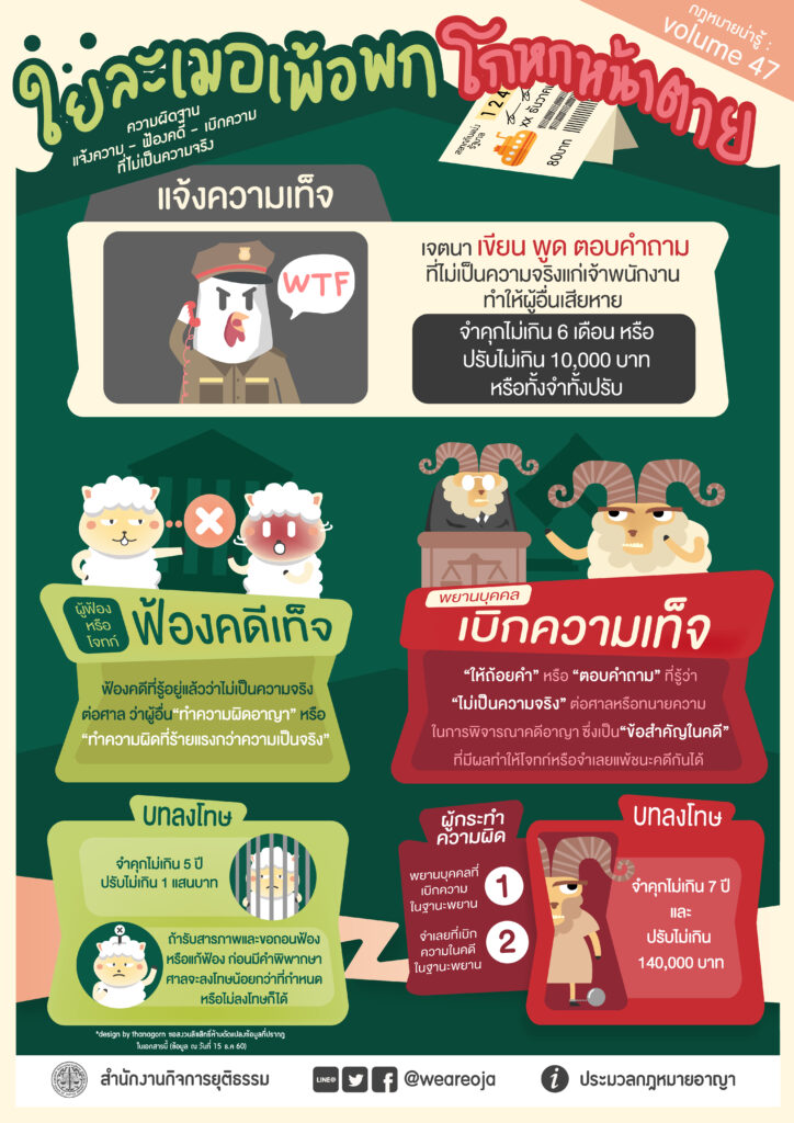 มาตรา 137 ผู้ใดแจ้งข้อความอันเป็นเท็จแก่เจ้าพนักงาน ซึ่งอาจทำให้ผู้อื่นหรือประชาชนเสียหาย ต้องระวางโทษจำคุกไม่เกิน 6 เดือน หรือปรับไม่เกิน 10,000 บาท หรือทั้งจำทั้งปรับ