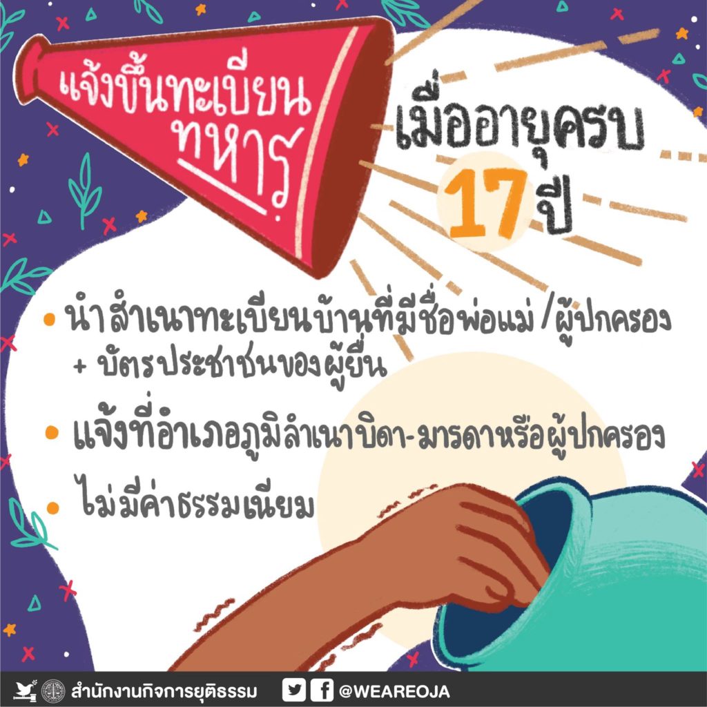 – อายุครบ 17 ปี (ในปีที่แจ้งขึ้นทะเบียนทหารกองเกิน)