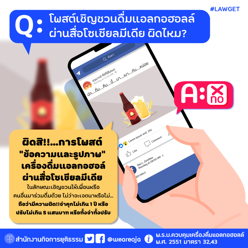 โพสต์ชวนดื่มเเอลกฮอล์…ผิดกฎหมาย
