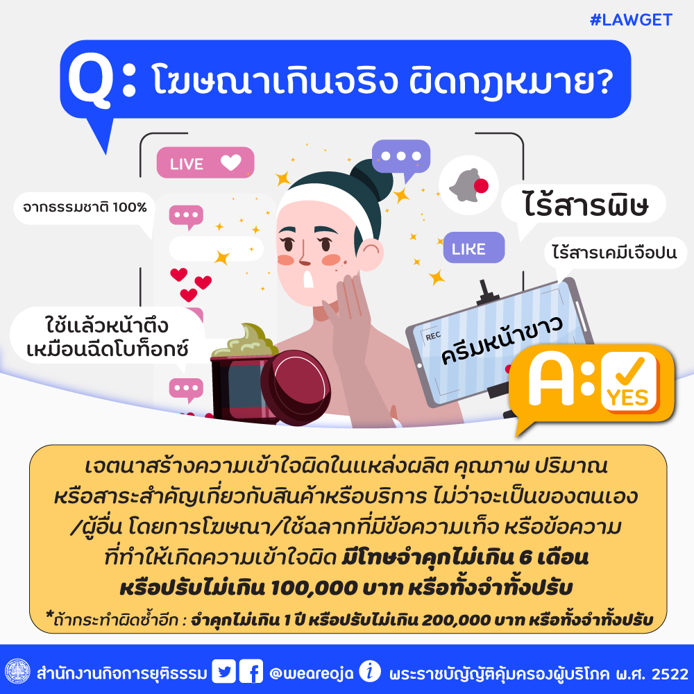 ปัจจุบันมีเซเลบิตี้ คนดัง Net idol Youtuber สร้างผลิตภัณฑ์ใหม่ๆ มาขายกันมากมาย พร้อมด้วยการโฆษณาผลิตภัณฑ์มากมาย แต่ก็ต้องระวังการโฆษณาเกินจริงด้วยนะครับ … แล้วการโฆษณาเเบบไหนถึงจะไม่ผิดกฎหมายกันนะ