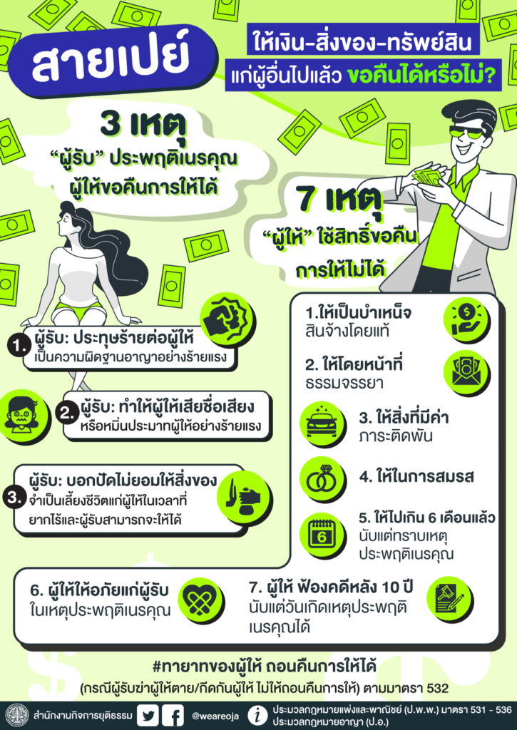 3 เหตุ “ผู้รับ” ประพฤติเนรคุณ ผู้ให้ขอคืนการให้ได้…