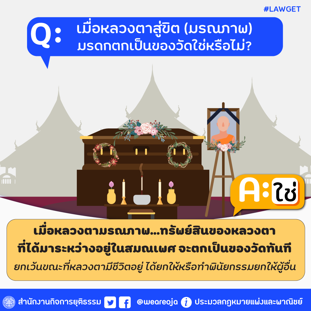 คำตอบ: ใช่ เมื่อหลวงตามรณภาพ…ทรัพย์สินของหลวงตาที่ได้มาระหว่างอยู่ในสมณเพศจะตกเป็นของวัดทันที ยกเว้นว่าในขณะหลวงตามีชีวิตอยู่หลวงตาได้ทำการยกให้ผู้อื่นหรือทำพินัยกรรมให้คนอื่นไปแล้ว