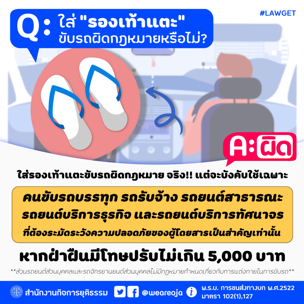 คำตอบ คือ จริง ถึงแม้ว่าใส่รองเท้าแตะขับรถมีความผิดทางกฎหมายจริง แต่จะบังคับใช้กับการขับรถบางประเภท ดังนี้
