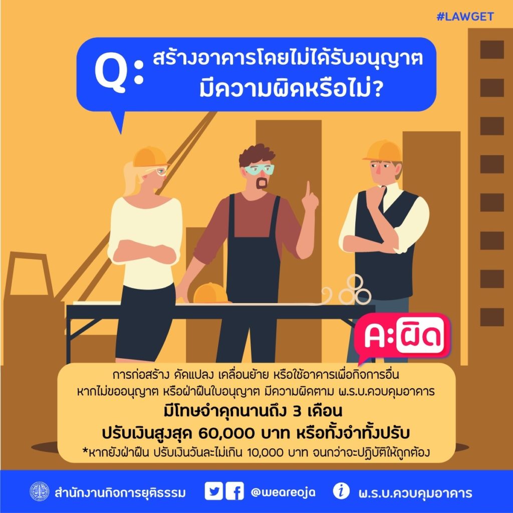 คำตอบ คือ ผิด การก่อสร้าง ดัดแปลง เคลื่อนย้าย หรือใช้อาคารเพื่อกิจการอื่น หากไม่ขออนุญาต หรือฝ่าฝืนใบอนุญาต มีความผิดตาม พ.ร.บ.ควบคุมอาคาร มีโทษจำคุกนานถึงสามเดือน ปรับเงินสูงสุดหกหมื่นบาท หรือทั้งจำทั้งปรับ และหากยังฝ่าฝืน ปรับเงินวันละไม่เกินหนึ่งหมื่นบาท จนกว่าจะปฏิบัติให้ถูกต้อง