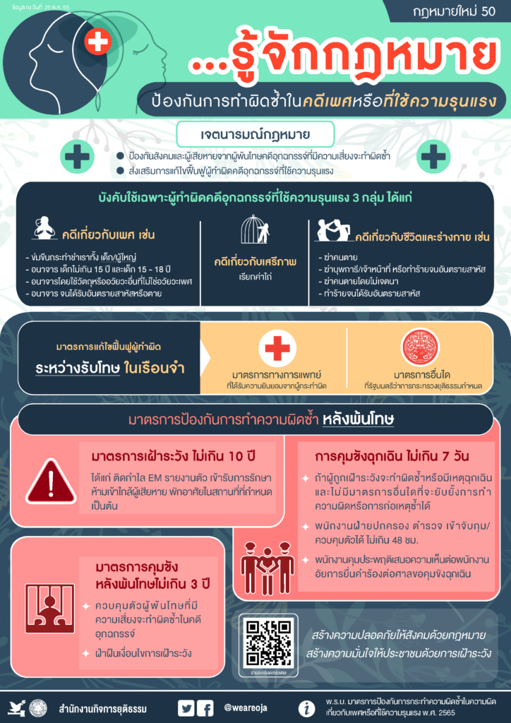 อ้างอิง : พระราชบัญญัติมาตรการป้องกันการกระทำความผิดซ้ำในความผิดเกี่ยวกับเพศหรือที่ใช้ความรุนแรง พ.ศ. 2565