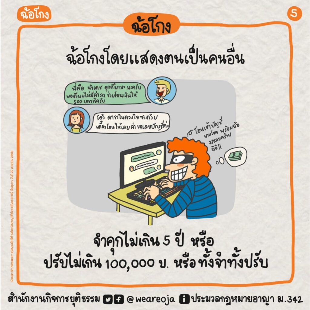 ฉ้อโกงประชาชนโดยแสดงเป็นคนอื่น มีโทษ จำคุก 6 เดือน ถึง 7 ปี และปรับ 10,000 – 140,000 บาท