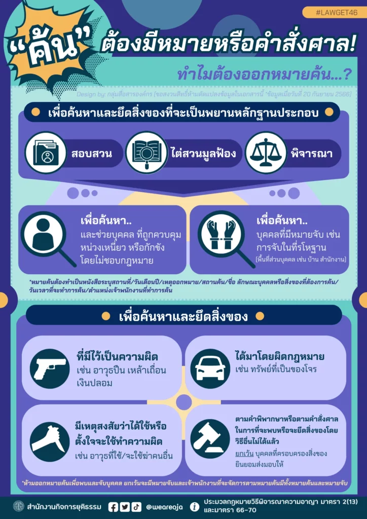 *หมายค้น ต้องทำเป็นหนังสือระบุสถานที่ /วันเดือนปี /เหตุออกหมาย /สถานค้น /ชื่อ ลักษณะบุคคลหรือสิ่งของที่ต้องการค้น /วันเวลาที่จะทำการค้น /ตำแหน่งเจ้าพนักงานที่ทำการค้น