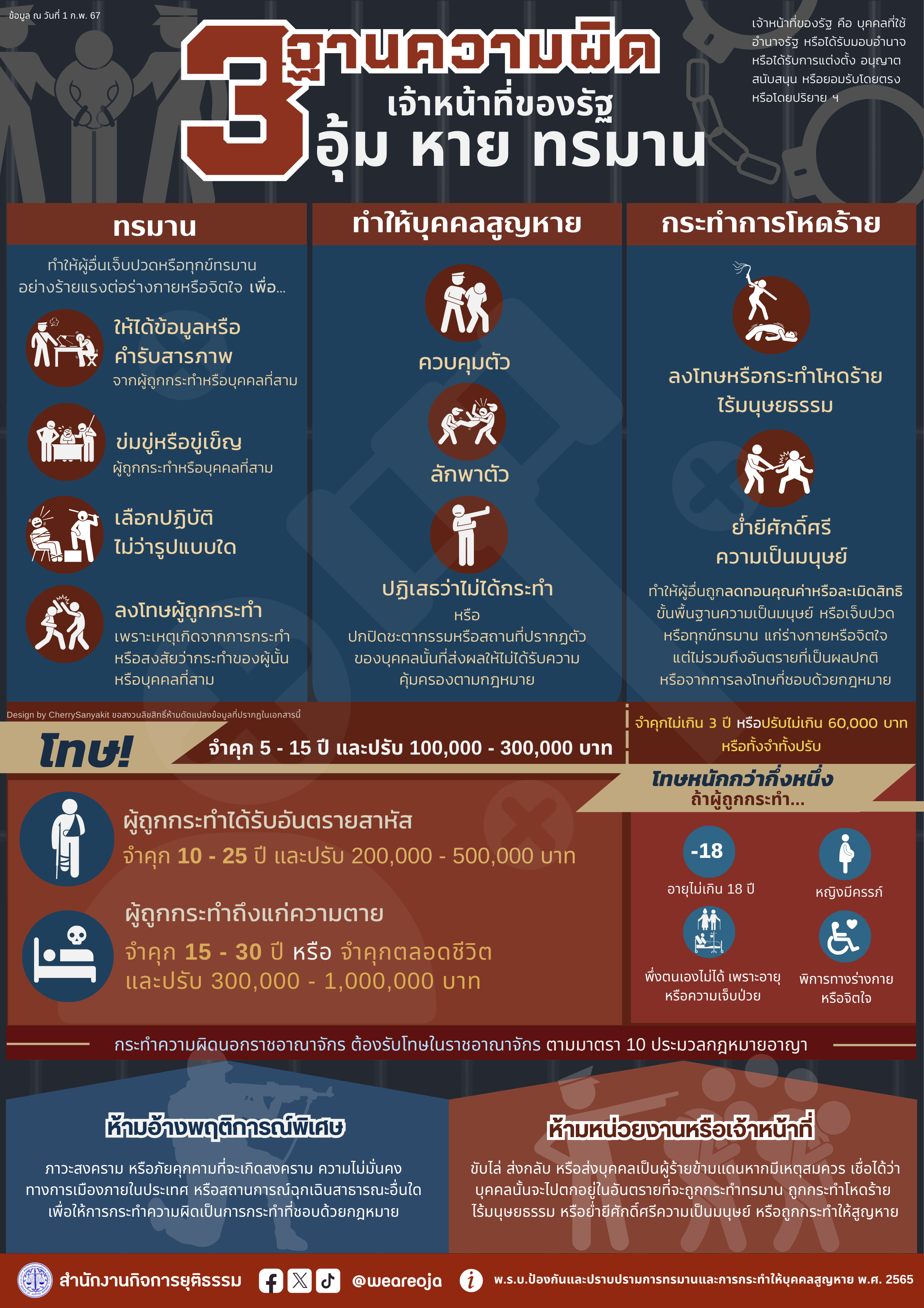 ที่มา : พระราชบัญญัติป้องกันและปราบปรามการทรมานและการกระทำให้บุคคลสูญหาย พ.ศ. 2565