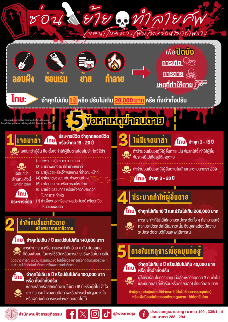5 ข้อหาเหตุฆ่าคนตาย ได้แก่