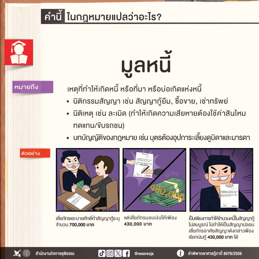 มูลหนี้ หมายถึง เหตุที่ทำให้เกิดหนี้ หรือที่มา หรือบ่อเกิดแห่งหนี้